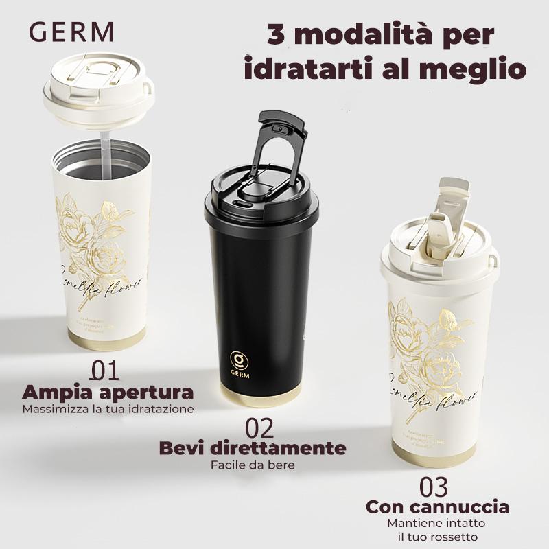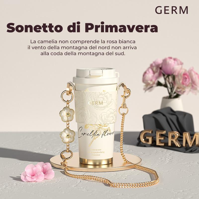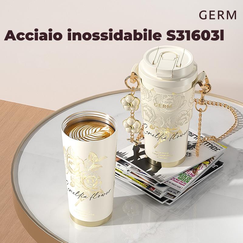 Immergiti nell'eleganza floreale con questo tumbler della Collezione Camellia GERM. Disponibile in due raffinate combinazioni - nero con dettagli dorati per un look sofisticato e bianco neve per purezza minimalista - celebra la bellezza della camelia con un design che unisce natura e modernità.